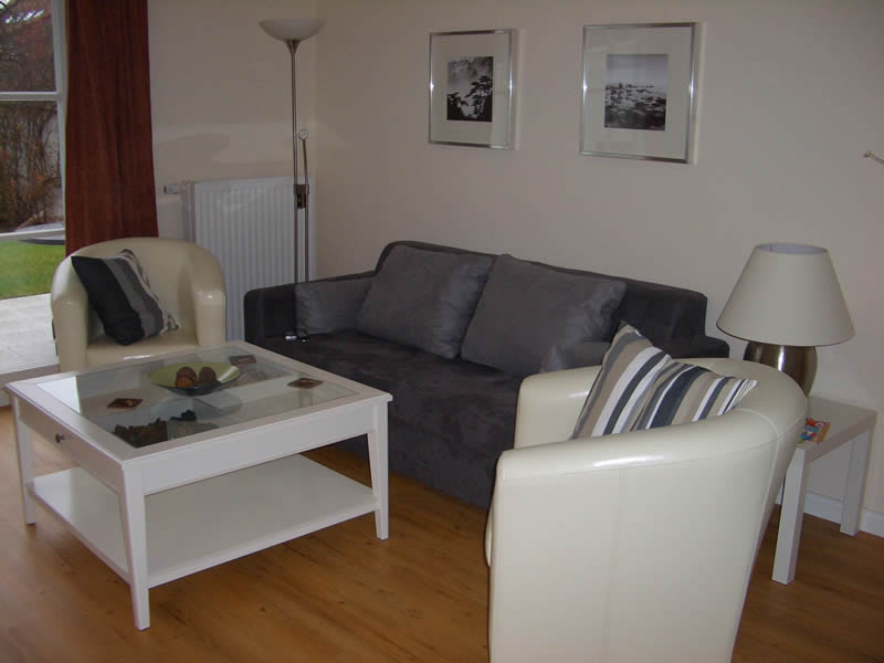 • geschmackvolle, hochwertige Einrichtung • voll ausgestattete Einbauküche mit Markengeräten • Zentralheizung • großzügige Glasfronten • geräumige Terrasse mit Tisch und Stühlen • TV (Sat, digital) • MP3-CD-Radio • W-Lan (kostenfrei) • Carport • Münz-Waschmaschine und Trockner in den Gemeinschaftsräumen • Fahrrad-Haus
